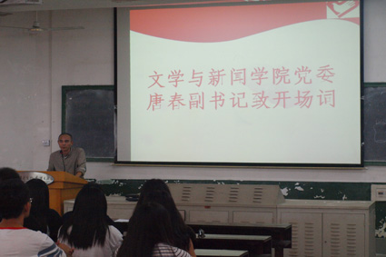 首先,全体与会人员起立,奏《青年志愿者之歌》。随后,党委唐春副书记致开场词。首先,他对青年志愿者表达了感谢之情,对他们用志愿行动推动志愿行为表示肯定。同时,也就我院"爱心血库"被学校接管一事作出评价。他提出,我院虽失去传统品牌,但对全校各院来说是好事,充分促进了志愿活动的完善和改进。最后唐春副书记对青年志愿者表达了祝愿,他希望志愿者们保有公益心,让志愿活动成为习惯,并在活动中有所收获。