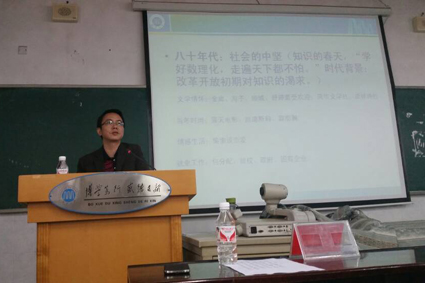 首先,齐绍平书记使同学们了解到近百年来大学生的演变以及大学招生制度的改革,通过隋炀帝、袁世凯等几位历史上有争议的人物为中国考试制度作出的重大贡献,使同学们明白了辩证的认识历史的重要性。接着以自身朋友的经历讲述了高考放开年龄限制后所带来的一些变化,倡导同学们珍惜光阴,以及求学问不怕晚的坚持态度。并列举解放前至新千年以后不同时代的特点,指出社会思想是运动的先导,在国力日益强盛的当今,当代青年更应以国家为己任,将国家命运和个人经历结合起来,成为有责任有理想的优秀青年。