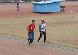 第三十三届田径运动会持续进行。在今天上午的比赛中,我院选手文静以小组第二的成绩进入女子200米的决赛。在男子5000米长跑中,房甸和、张旭阳、陈宁都凭靠顽强毅力跑完全程。其中,“赤脚大哥”房甸和赤脚上阵,并取得不错成绩,为我院争得荣誉。陈宁跑至5000米的最后阶段,我院运动员吕迪在取得女子三级跳决赛第七名的优异成绩后,迅速赶至径赛赛场,为陈宁加油,并陪他跑向5000米终点,当两人共同达到终点时,所有文新人为这一幕欢呼呐喊!另外,其他参赛选手都取得较好的成绩。