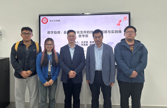 11月12日下午,湖南理工学院文学与新闻传播学院党委书记王文锋教授莅临文科楼215会议室作题为“数字自律:基于媒介化生存的技术、情感与实践维度考察”的学术讲座。本次讲座由许高勇副教授主持,25级新闻与传播、新闻传播学专业研究生参与。